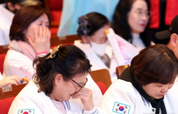 | ▲ 29일 새벽 부산 동구 부산시민회관 대극장에 모인 시민들이 2030세계박람회 유치에 실패하자 아쉬움의 눈물을 흘리고 있다. [뉴시스] |