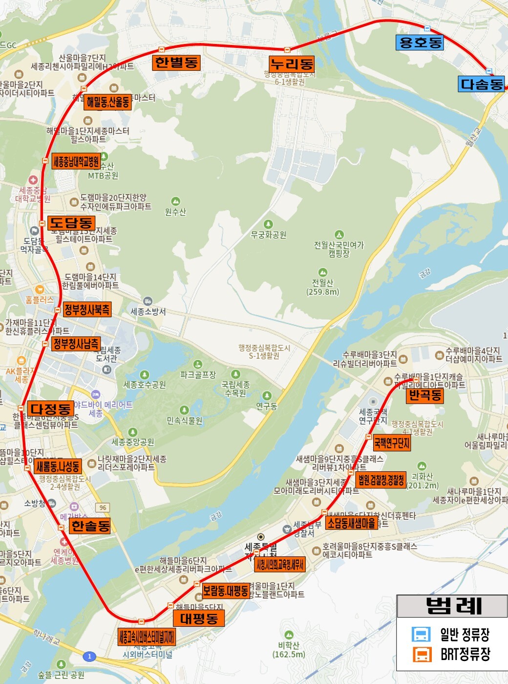 | ▲광역버스 B7노선도 세종방면.[세종시 제공] |