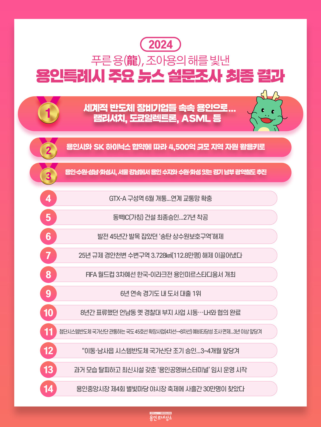 | ▲ 시민들이 뽑은 '2024년 용인시 주요뉴스' 최종 결과. [용인시 제공] |