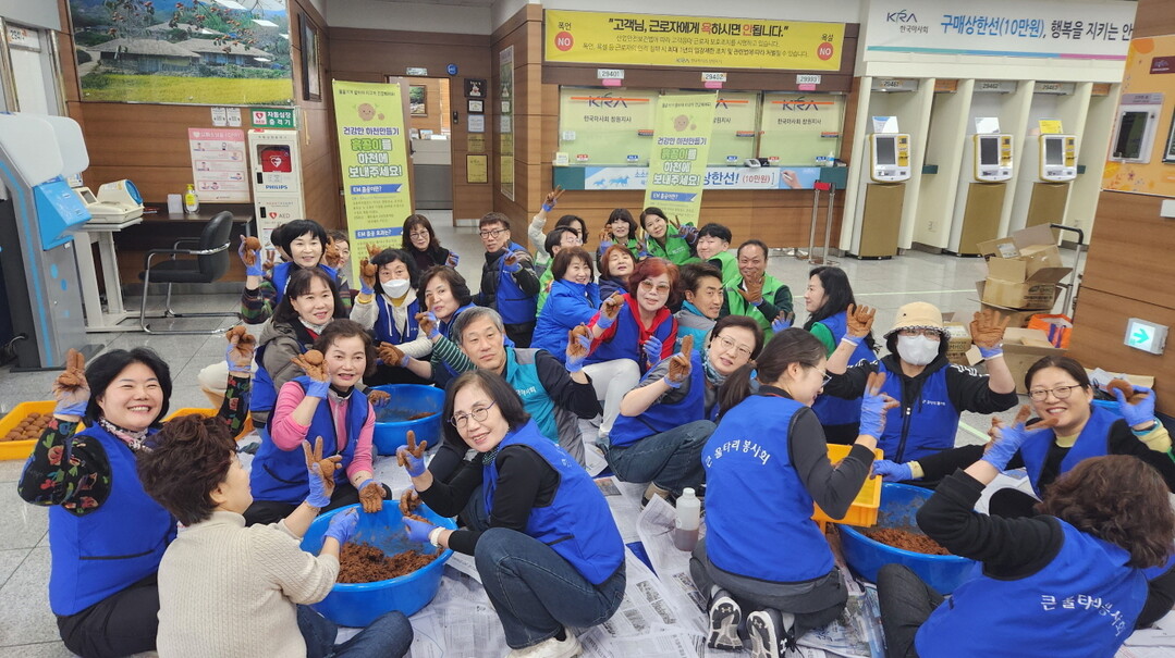 이날 마사회 창원지사의 후원으로 총 600개의 흙공이 제작됐다. 2주간 발효 과정을 거친 후 인근 하천 수질 개선과 생태 환경 정화에 활용된다.