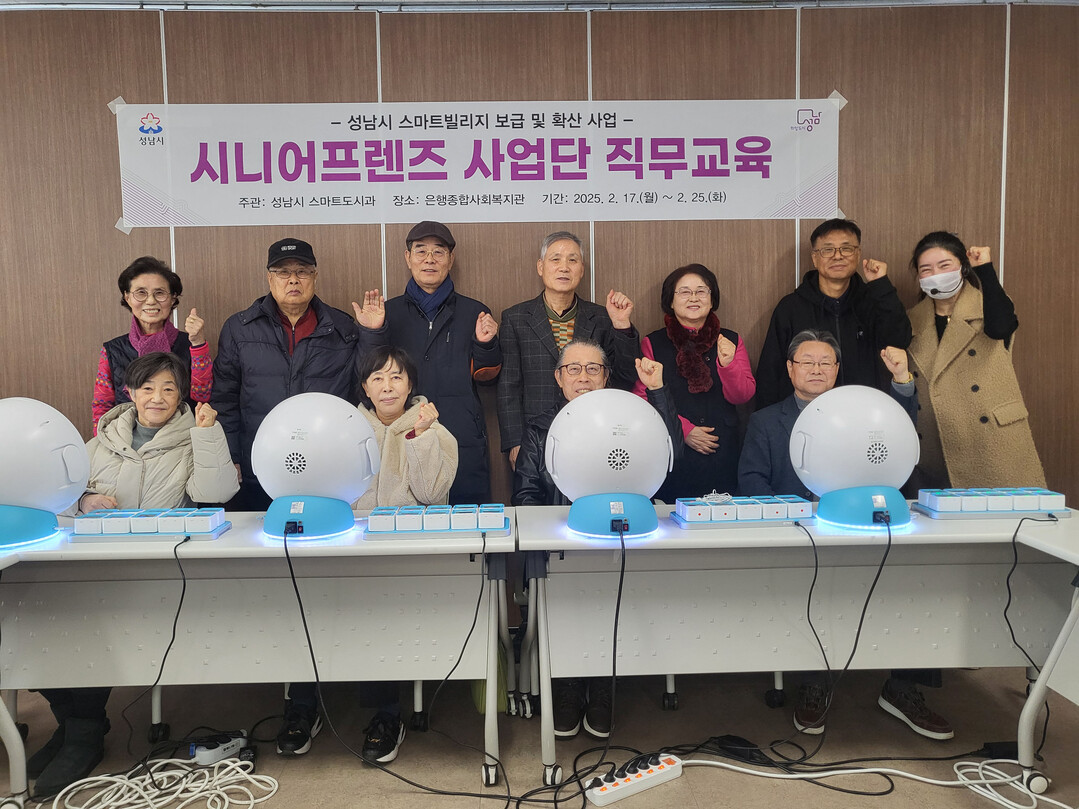 성남시는 시니어프렌즈 사업단의 원만한 업무 수행과 스마트기기 활용 역량 강화를 위해 지난 17~27일 인지훈련 로봇 및 화상교육 시스템 사용법 등을 포함한 직무교육을 실시했다. 사업단은 내달부터 경로당을 순회하며 스마트기기 교육과 운영 지원 업무를 담당하게 된다.