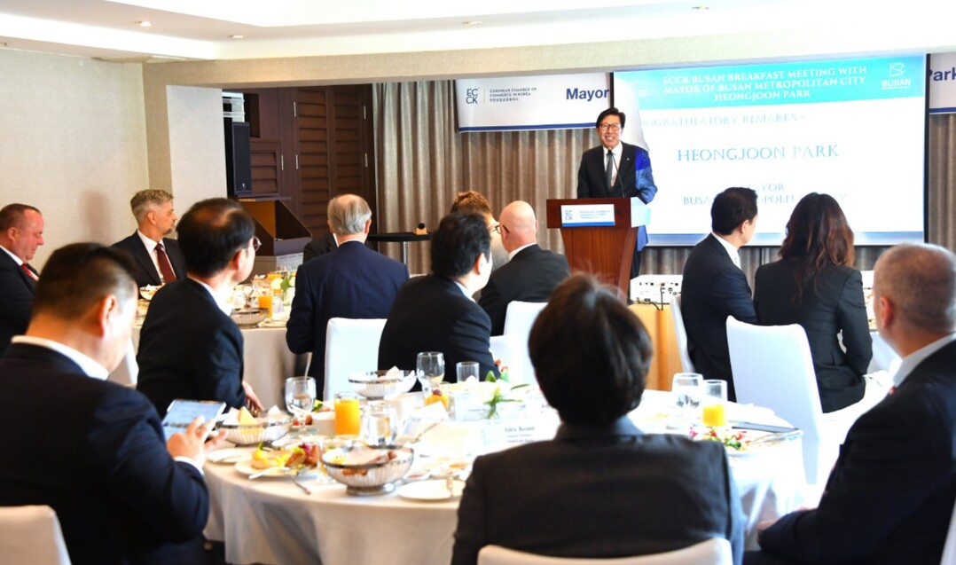 박형준 부산시장은 25일 해운대 웨스틴조선 부산에서 주한유럽상공회의소(회장 필립 반 후프, 벨기에) 초청 조찬 간담회에 참석했다.