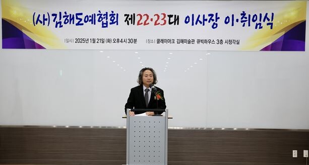 사단법인 김해도예협회는 21일 경남 클레이아크김해미술관 큐빅하우스에서 제22·23대 이사장 이·취임식을 개최했다.
