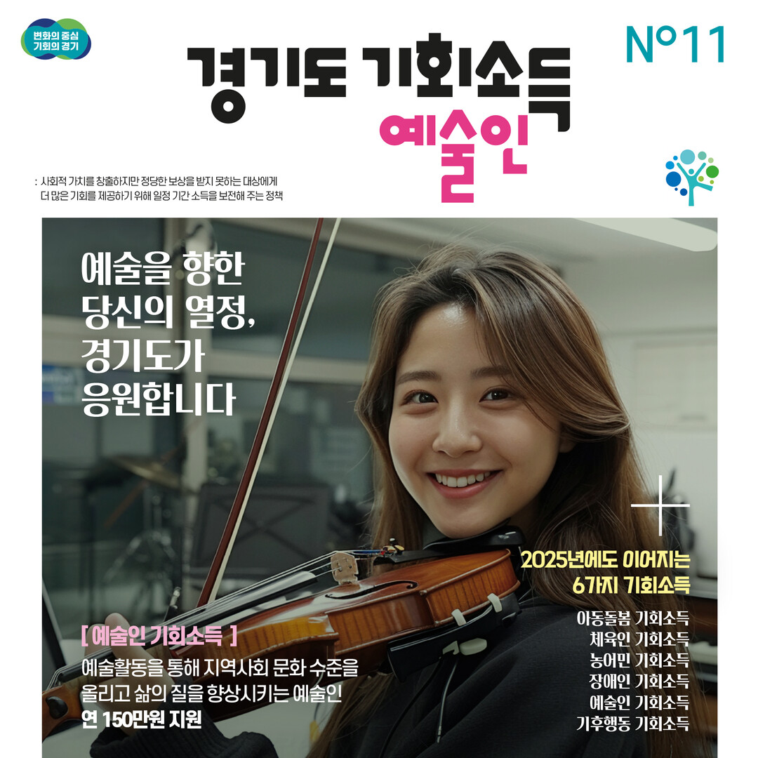 '예술인 기회소득'은 사회적 가치를 창출하는 예술인들이 자긍심을 갖고 창작 활동에 전념할 수 있도록 연 150만 원을 지원하는 경기도의 대표적인 예술정책으로 지난해까지 1만6000여 명의 예술인을 지원했다.