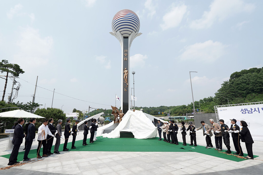 28일 성남시에 따르면 지난 27일 오후 2시 시청 공원에서 신상진 성남시장과 보훈단체 회원, 시민 등 300여 명이 참석한 가운데 현충탑 제막식을 열었다.