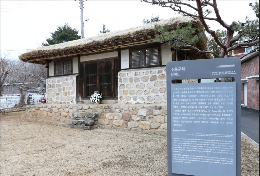 3일 화성시에 따르면 수촌교회는 화성시 기념물 제1호로 1905년 3월 5일 김응태 선생의 주도로 교회의 역사가 시작됐다.