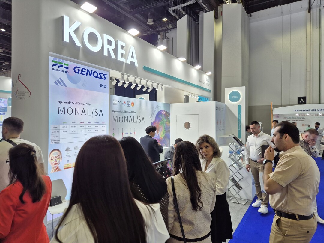 지난 14일부터 16일까지 아랍에미리트 두바이에서 열린 전시회에 경기도 지원으로 참가한 11개사는 글로벌 피부 미용 바이어들과 914건의 상담을 진행했으며 계약추진액은 58건, 1137만 달러(167억 원)로 잠정 집계됐다. 이 중 현장에서 13건, 263만 달러(38억 원) 규모의 계약 실적을 달성했다.