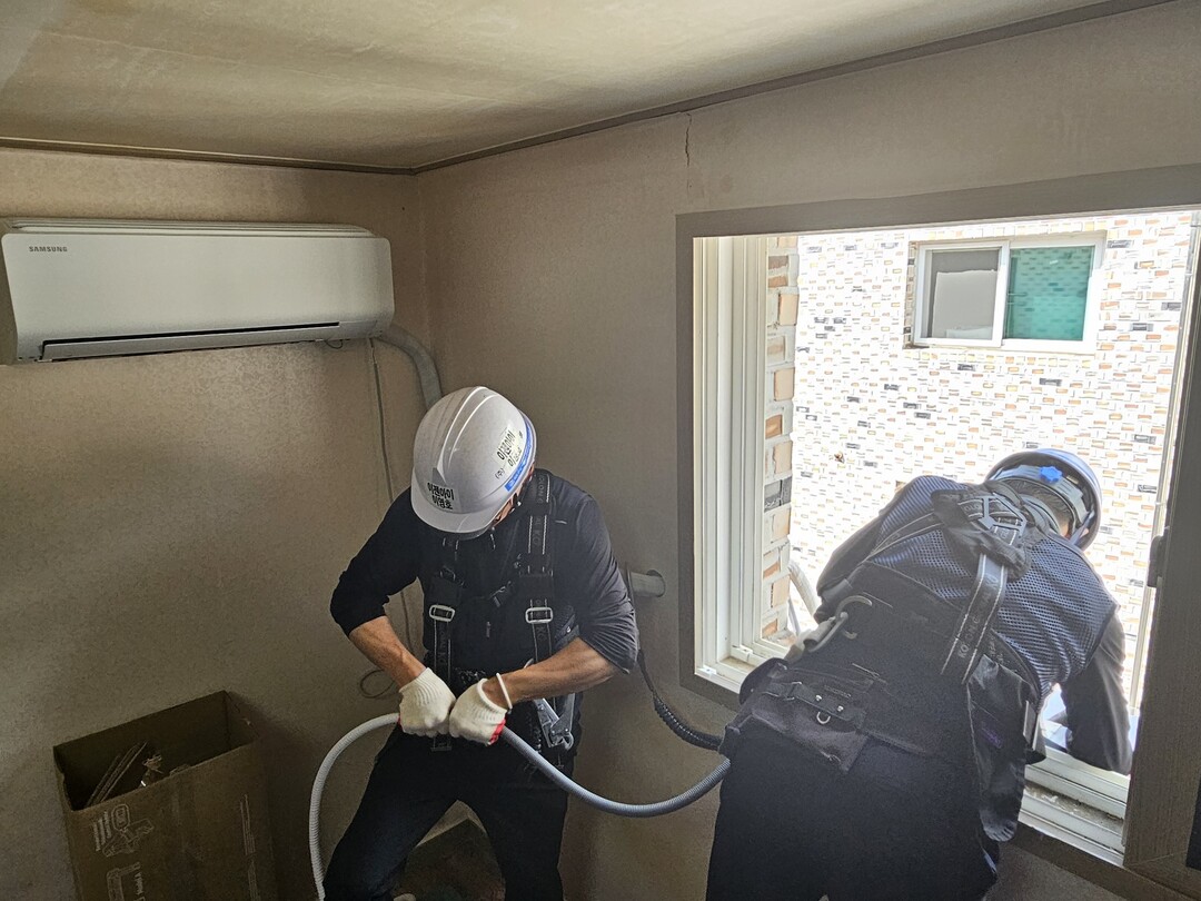 | ▲ 저소득층의 여름나기 지원을 위해 에어컨을 설치하고 있는 모습. [경기도 제공] |