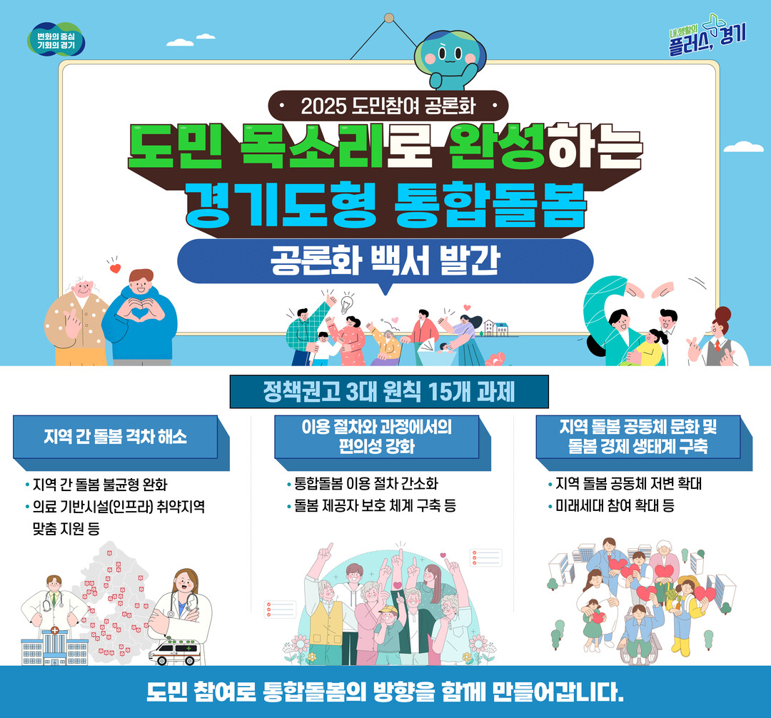 이번 백서는 공론화 전 과정과 도민 정책권고를 담아 향후 경기도형 통합돌봄 정책 수립과 실행을 뒷받침하는 핵심 기반이 될 것으로 기대된다.