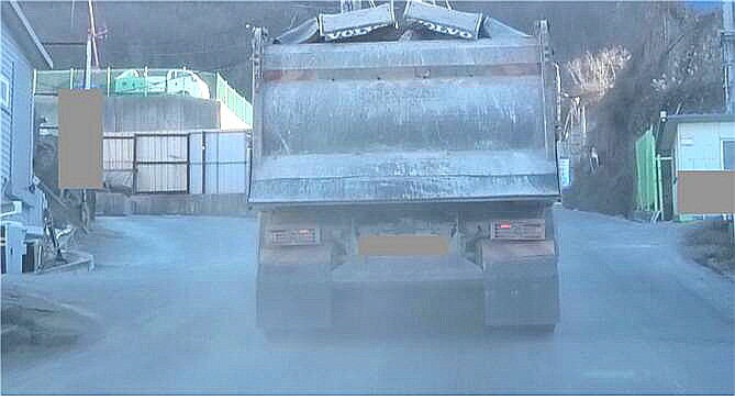 | ▲ 세륜 및 측면살수를 실시하지 않아 도로에 비산먼지를 발생시키는 수송차량 [부산시 제공] |