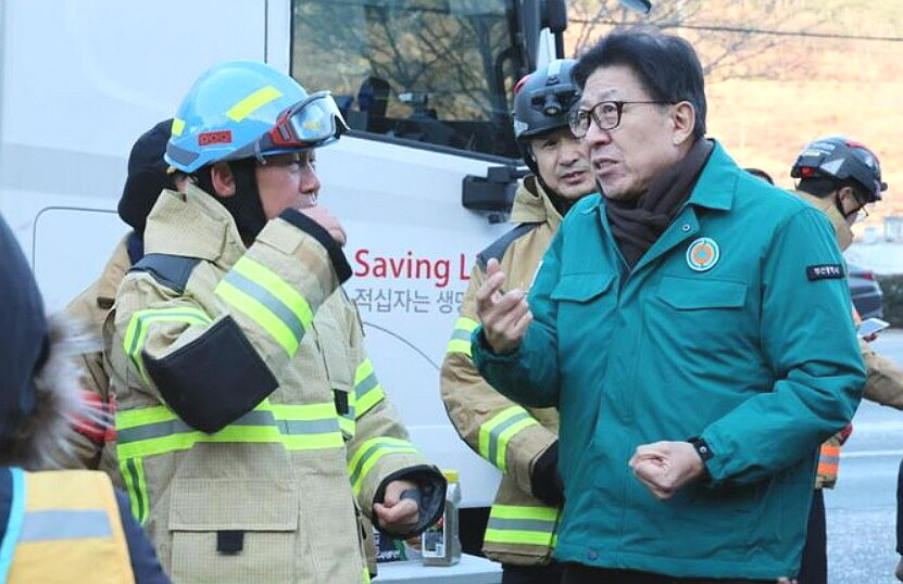 | ▲ 지난 1월 22일 박형준 부산시장이 기장군 산불 현장을 찾아 진화 상황을 살피고 있다. [부산시 제공] |
