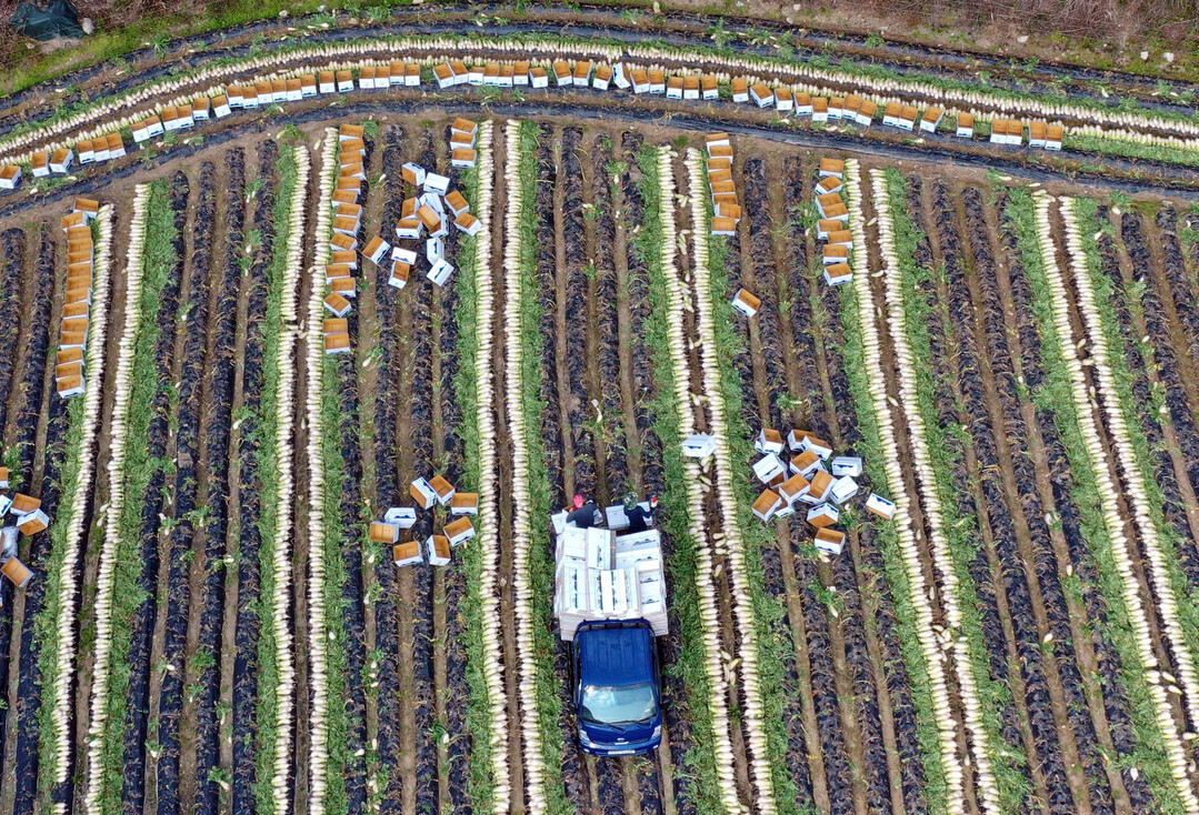 | ▲ 홍천군 내면 고냉지 무밭에서 수확이 한창이다. [이상훈 선임기자] |