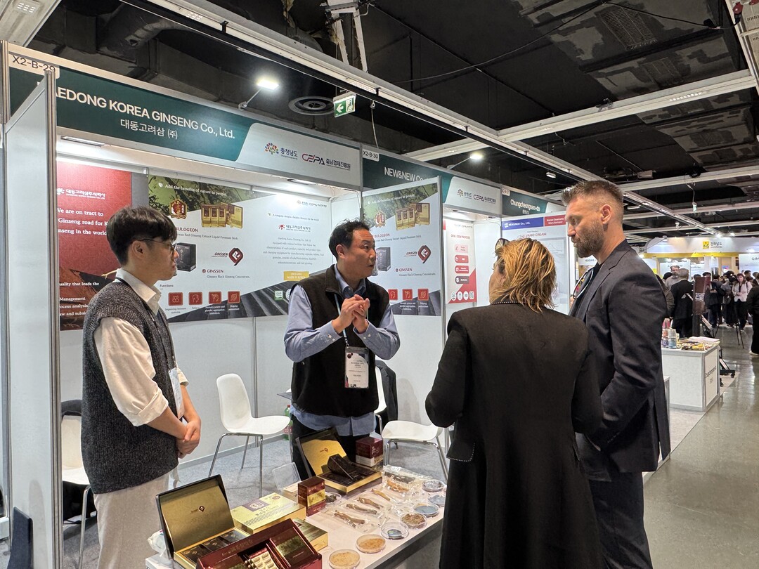 ▲오스트리아 세계한인경제인대회에서 수출상담을 하고 있는 충남 중소기업 관계자들.[충남도 제공]