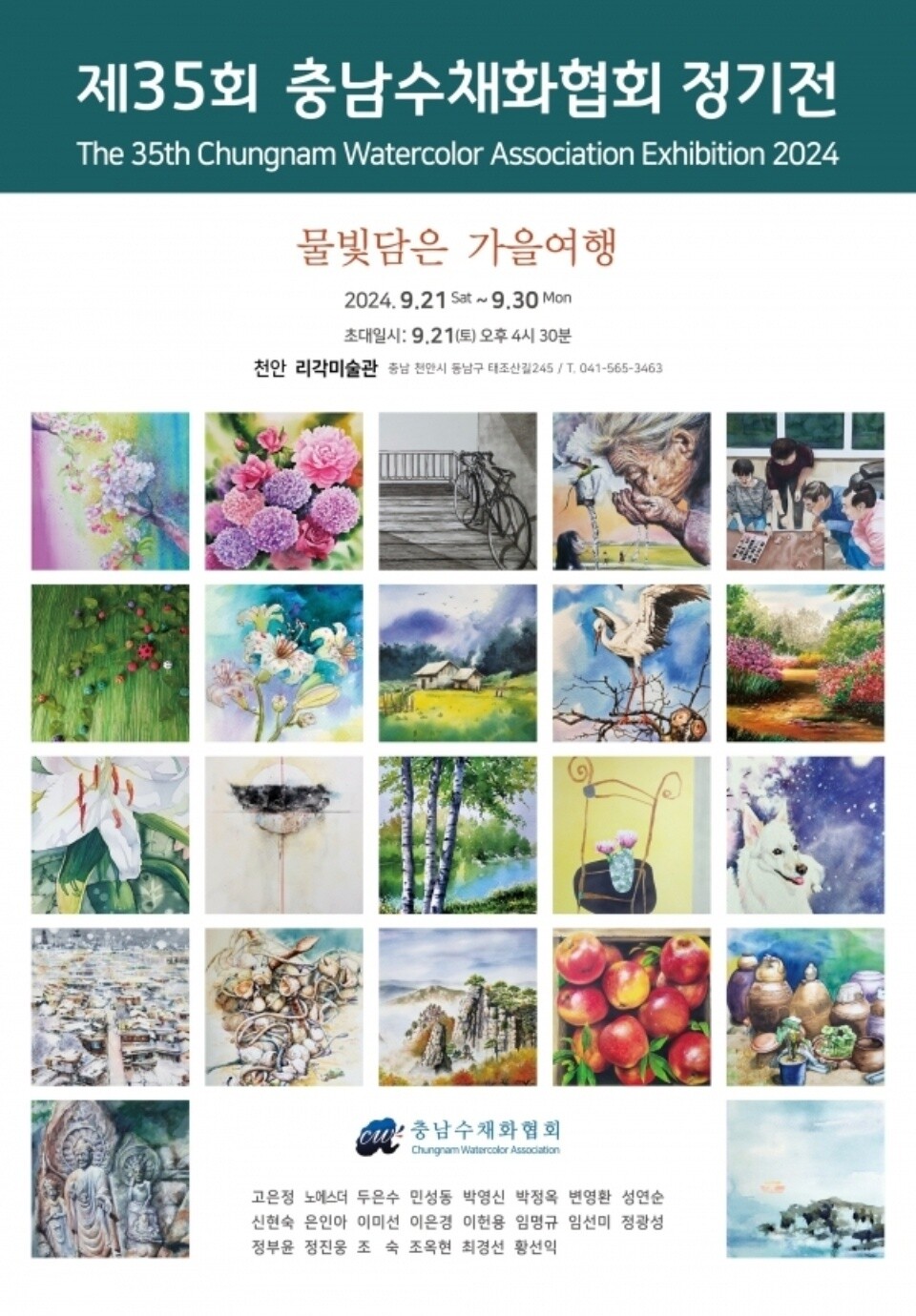 이번 그룹전에는 고은정, 노에스더, 두은수, 민성동, 박영신, 박정옥, 변영환, 성연순, 신현숙, 은인아, 이미선, 이은경, 이헌용, 임명규, 임선미, 정광성, 정부윤, 정진웅, 조숙, 조옥현, 최경선, 황선익 등 총 22명의 작가들이 참여해 자신만의 독특한 시선으로 해석한 가을의 풍경을 수채화로 담아냈다.