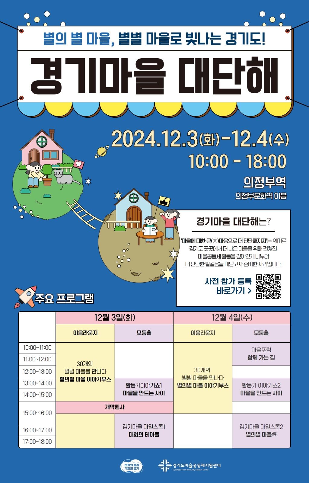 경기도마을공동체지원센터는 다음 달 3, 4일 의정부역 4층 의정부문화역 이음에서 '2024 경기도 마을공동체 활동공유주간-경기마을 대단해'를 개최한다고 18일 밝혔다.