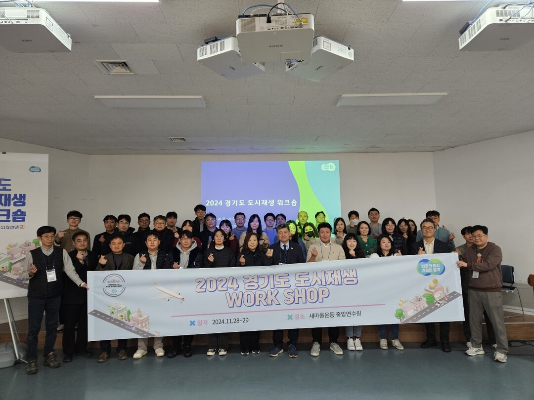 | ▲ 지난해 11월 29일 '2024 경기도 도시재생 워크숍' 참가자들이 기념촬영을 하고 있다.[경기도 제공] |