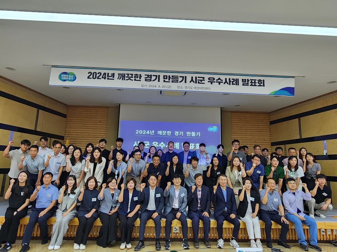 ▲ 지난 20일 열린 '2024년 깨끗한 경기 만들기 시군 우수사례 발표회' 참석자들이 기념촬영을 하고 있다. [경기도 제공]
