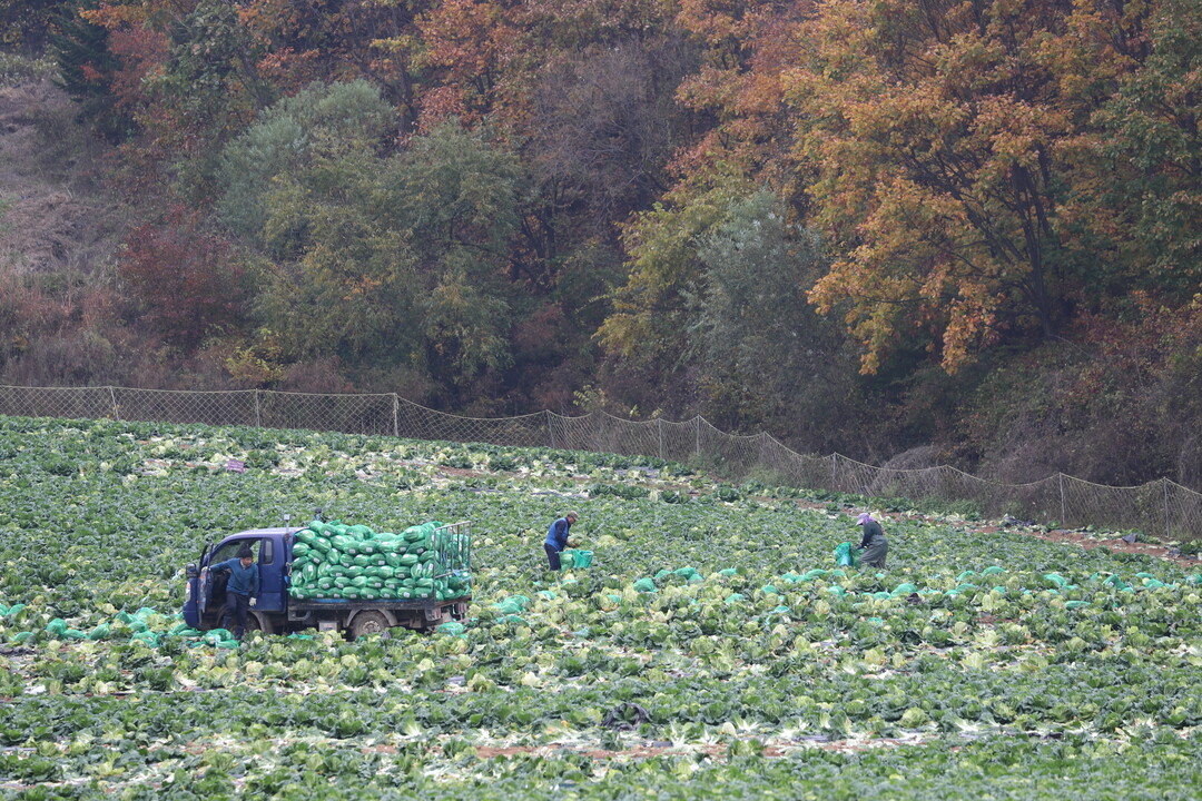 대신 고랭지 배추밭은 '금배추'를 수확하느라 바쁜 모습이다. 배추 작황이 좋지 않아서 속이 여물지 않은 배추는 밭에 그냥 버려진다. 배추밭 옆 사과농장에는 발갛게 익은 사과가, 산에는 노랗게 물들어 가는 나뭇잎이 늦가을의 정취를 더해줄 뿐이다.