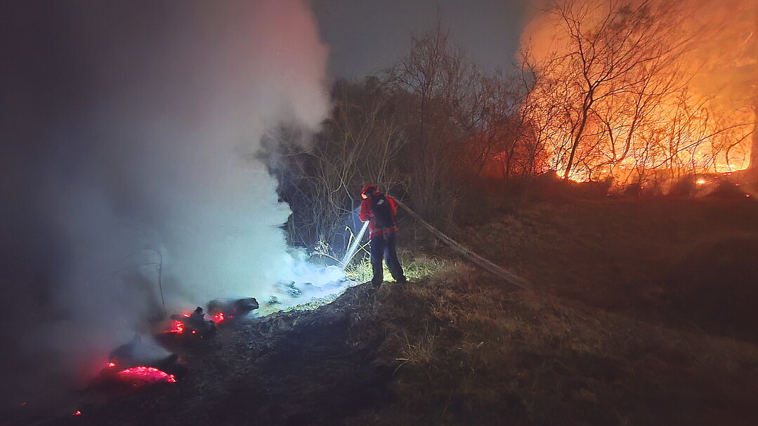 | ▲ 밀양 산불 현장에서 특수진화대원이 심야 진화작업을 펼치고 있다. [산림청 제공] |