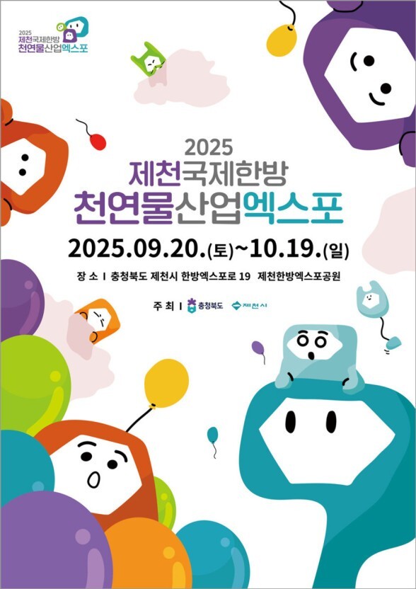 충북도와 제천시는 9월 20일부터 10월 19일까지 30일간 한방엑스포공원 일원에서 '2025 제천국제한방천연물산업엑스포'를 개최한다고 17일 밝혔다.