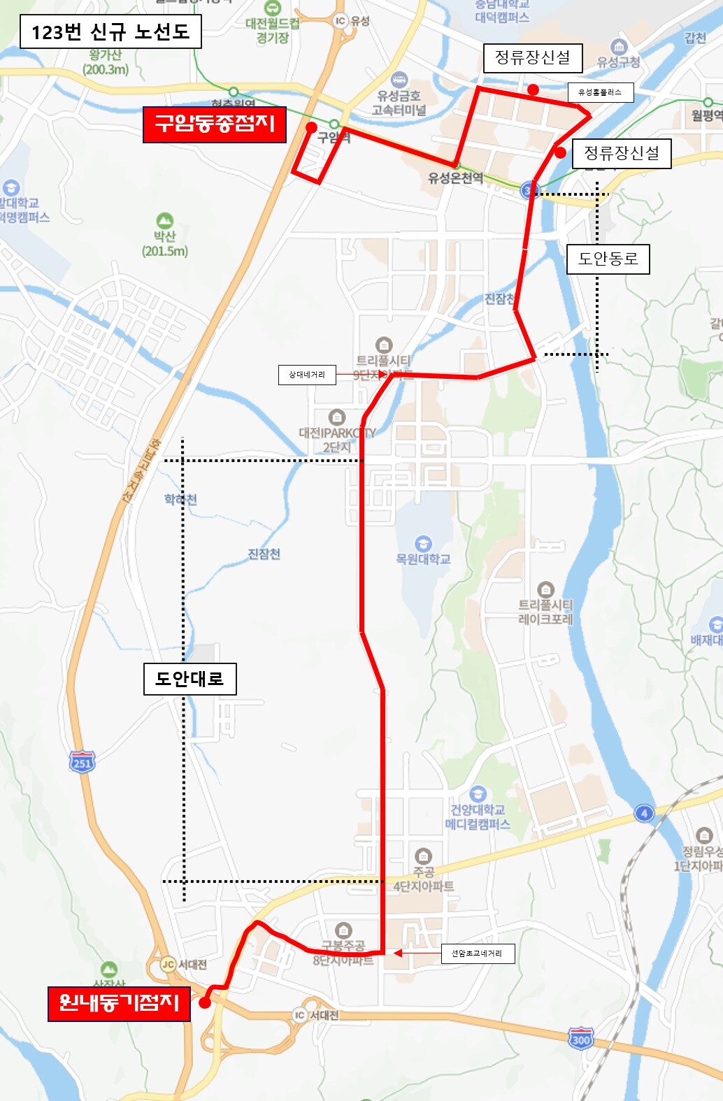 | ▲ 대전 시내버스 123번 신규 노선도. [대전시 제공] |