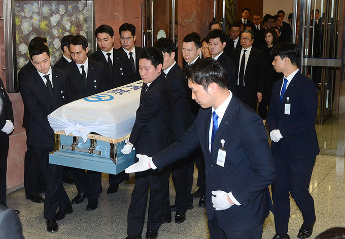 16일 오전 서울 신촌세브란스병원 장례식장에서 고 조양호 한진그룹 회장의 발인(