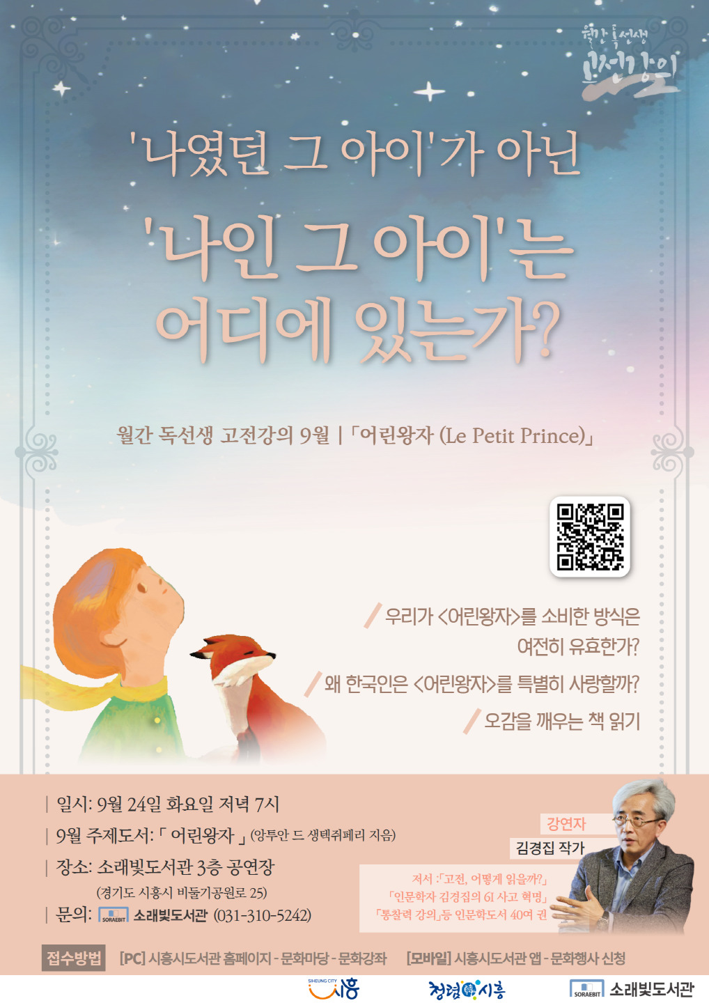 | ▲ 시흥 소래빛도서관 가을밤 감성 깨우는 고전 '어린왕자' 특강 포스터. [시흥시 제공] |