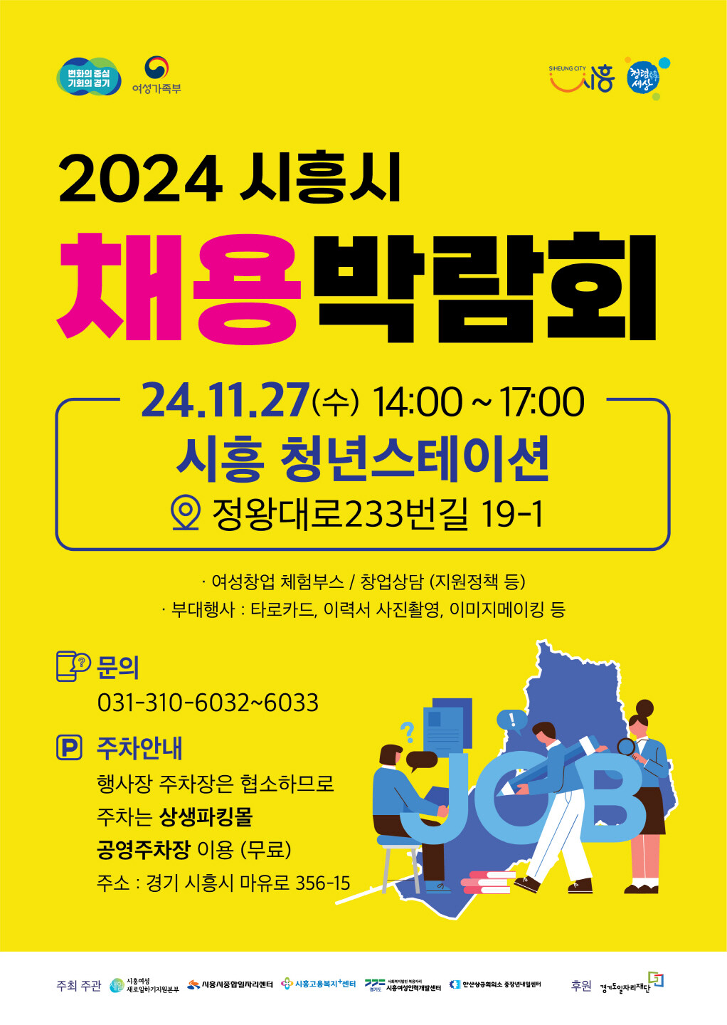 행사 관련 문의는 시흥시 일자리총괄과 시흥여성새일지원본부(031-310-6032~3)로 하면 된다.