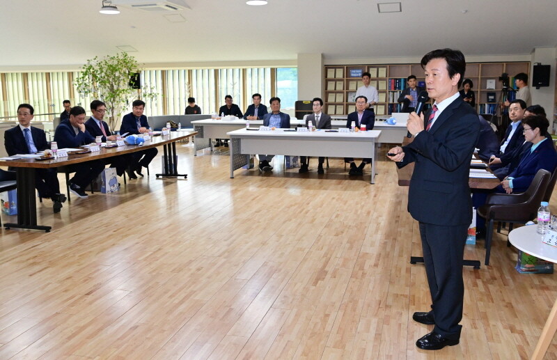 | ▲ 24일 대한민국지방신문협의회 사장단이 K-기업가정신센터에서 조규일 시장으로부터 센터 설립 취지에 대한 설명을 듣고 있다. [진주시 제공] |