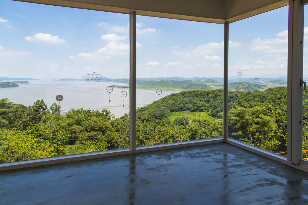 버스는 풍요로운 김포 들녘을 달려 애기봉생태공원에 도착한다. 북한과 인접해서 대형 크리스마스트리 점등이 뉴스를 장식했던 옛 애기봉전망대가 지금은 미래를 주제로 평화와 생태를 아우르는 현대적인 복합문화시설로 다시 태어났다.