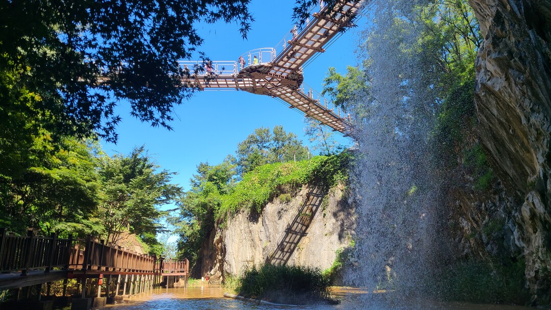 광명의 맛집이 모여있는 밤일음식문화거리에서 자유롭게 점심을 즐긴 후, 도덕산 출렁다리로 향한다. 도심의 야트막한 산이고 경사가 완만해서 아이들도 어렵지 않고 Y자형 출렁다리에서 감상하는 풍경도 좋다.