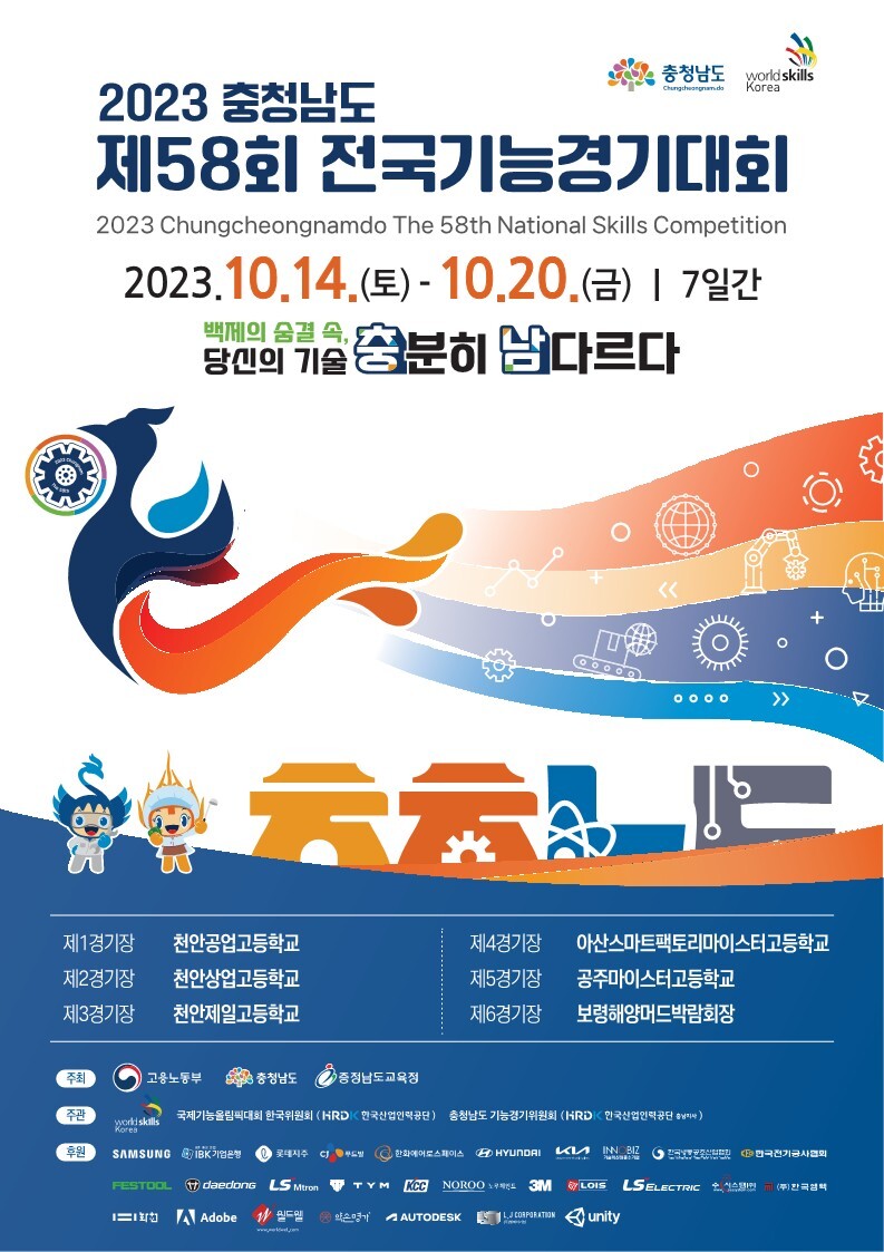 제 58회 전국기능경기대회가 ‘백제의 숨결 속, 당신의 기술 충분히 남다르다’를 캐치플레이스로 16년만에 충남 천안, 공주, 아산, 보령에서 분산개최된다.