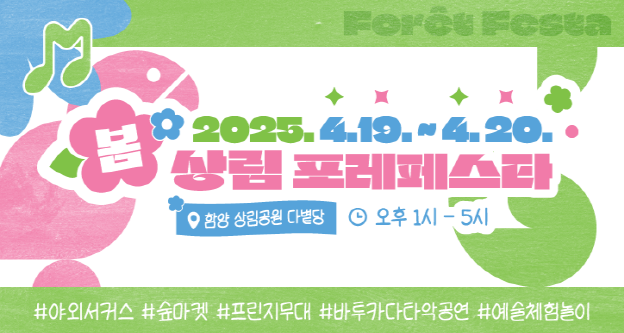 '2025 상림 포레 페스타'는 봄과 가을에 각각 다른 테마로 개최된다. 봄에는 서커스와 댄스 등 움직임 중심의 퍼포먼스를, 가을에는 '가을 상림-음악에 물들다'라는 주제로 소리와 음악을 중심으로 한 감성적인 축제를 선보일 예정이다.