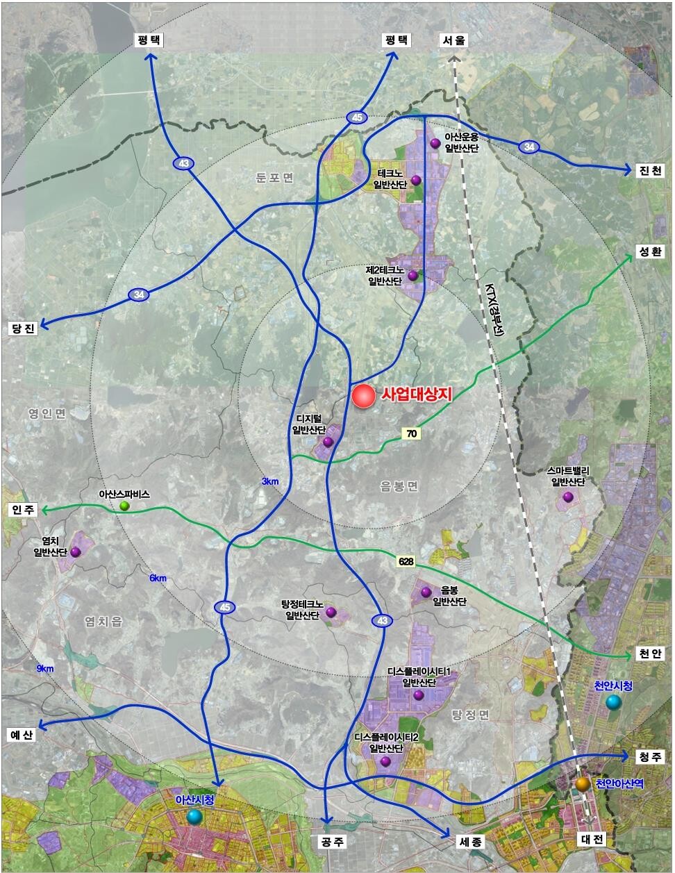 아산 음봉면에 35만㎡의 '아산 리더시밸리 산단' 들어선다