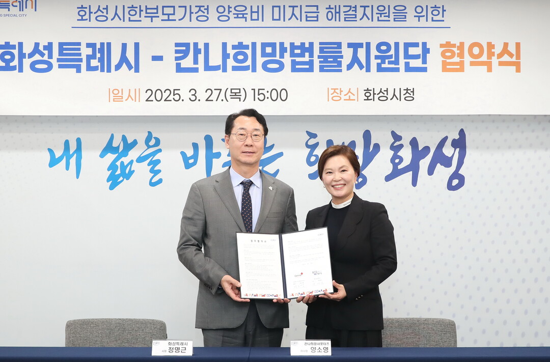 협약식에는 정명근 화성시장과 양소영 칸나희망서포터즈 이사장 등이 참석해, 한부모 가정의 복지 증진과 양육비 문제 해결을 위한 협력을 약속했다.