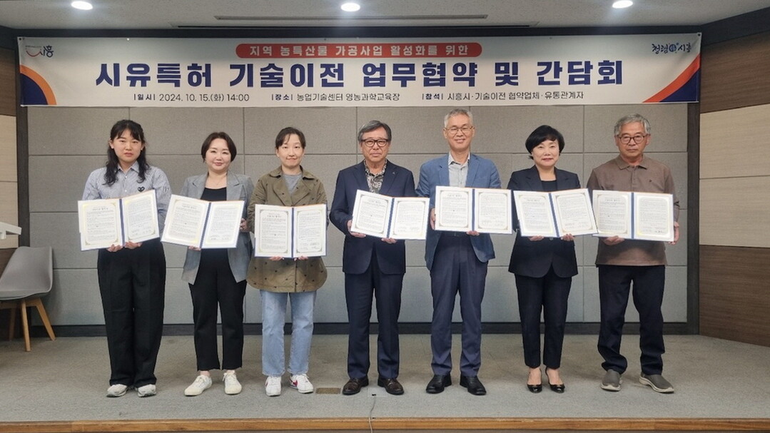 이번 협약은 시흥시 농업기술센터가 추진한 농산물 가공 시험연구사업의 성과를 민간에 이전해 지역 농특산물 가공산업을 활성화하고, 지역 경제 발전을 꾀하자는 취지다.