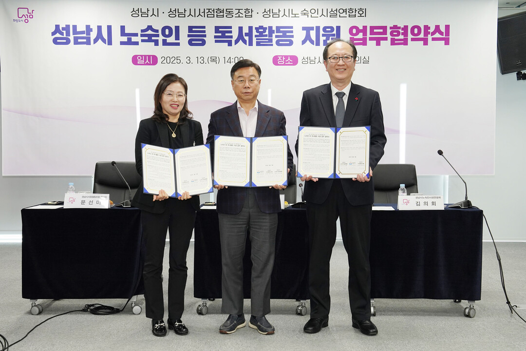 성남시는 13일 오후 2시 시청 4층 제1 회의실에서 신상진 성남시장과 문선미 성남시서점협동조합 이사장, 김의회 성남시노숙인시설연합회장, 김하종 안나의 집 대표 등이 참석한 가운데 '노숙인 독서 활동 지원에 관한 업무 협약'을 맺는다.