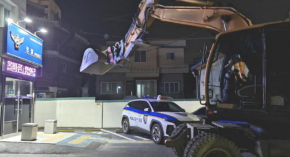 16일 함안경찰서에 따르면 지난 13일 새벽 3시 26분께 A 씨가 경찰지구대 인근 자신의 사업장에 있는 굴삭기를 몰고 지구대 입구에서 버킷(땅 파는 삽 부분)을 들어올리는 등 위협 시위를 벌였다.