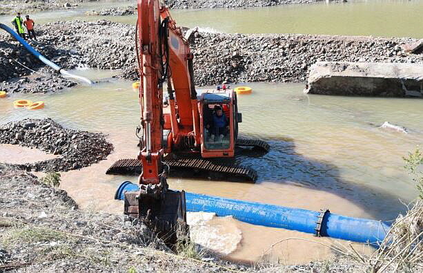 ▲ 울산 울주군 범서읍 사연리 무동교 인근에서 송수관로가 파손돼 울산시상수도본부 관계자들이 관로 교체 작업을 벌이고 있다. [울산시 제공]