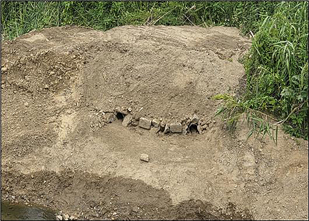 ▲ 성남시 탄천과 동막천 합류 지점에 조성한 수달 서식처(땅속 이동 통로 입구).  [성남시 제공]