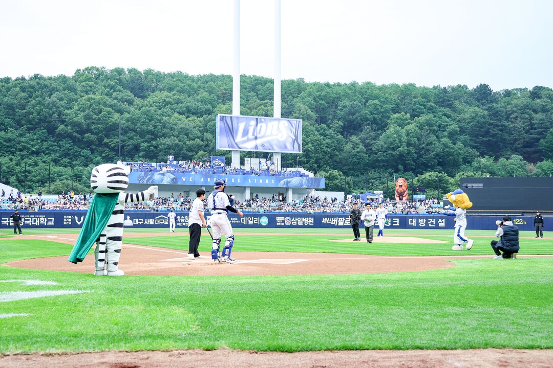 이날 삼성라이온즈와 기아 타이거즈의 경기는 박순진 총장의 시구, 김민재 총학생회장의 시타로 힘차게 막을 올렸다.