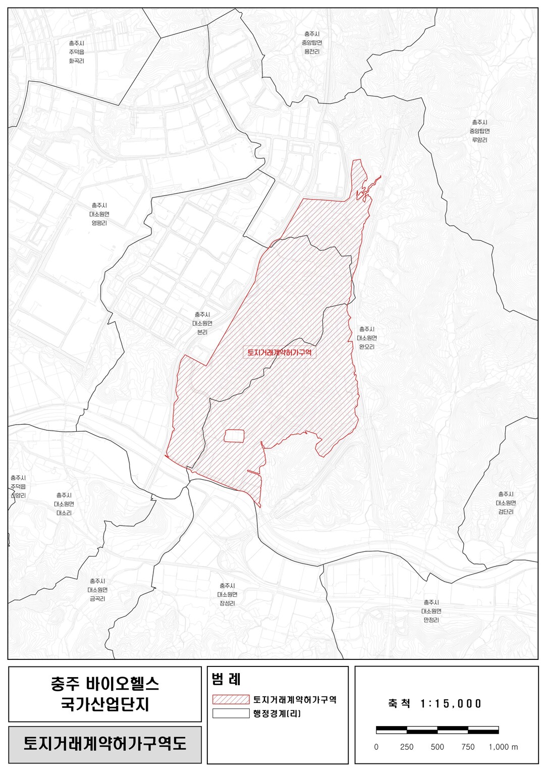 충북 충주 바이오헬스 국가산업단지 조성사업을 위해 충주시 대소원면 본리와 완오리 일부 2.33㎢가 토지거래계약 허가구역으로 재지정됐다.