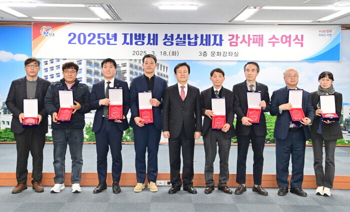 경남 진주시는 18일 시청 문화강좌실에서 건전한 납세문화 조성을 위한 '성실납세자 감사패 수여식'을 개최했다.
