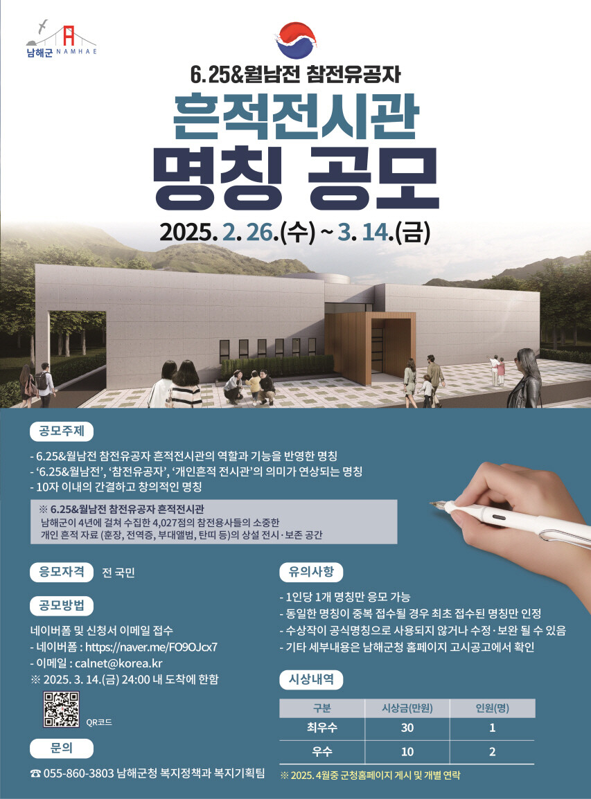 남해군 6.25&월남전 참전유공자 '흔적전시관' 명칭 공모
