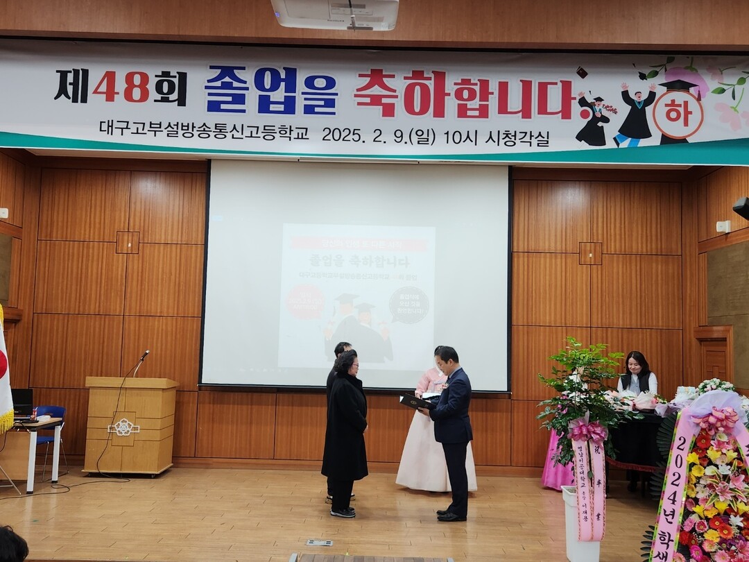 ▲방송통신고를 졸업한 학생이 졸업장을 받고 있다.[대구교육청 제공]