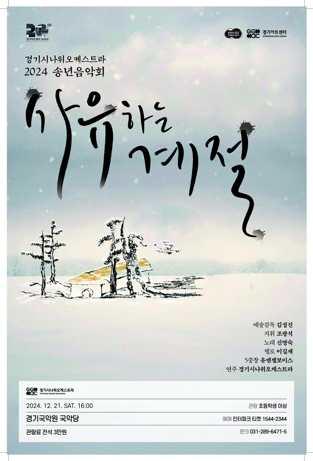 송년음악회 '사유하는 계절'은 오는 21일 오후 4시 경기국악원 국악당에서 선보인다. 티켓은 전석 3만 원이며, 초등학생 이상 관람 가능하다.