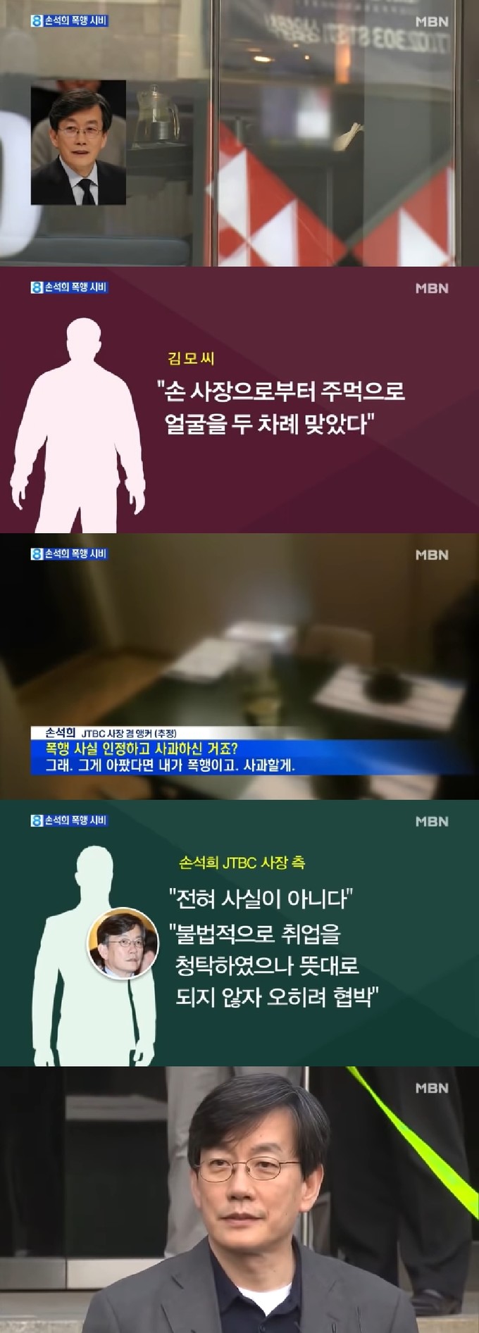아울러 당시 상황이 담긴 녹취 음성이 공개됐다. 공개된 녹취 음성에서 한 남성이 "폭행 사실 인정하고 사과하신 거냐"고 묻자 손 사장으로 추정되는 이가 "그래. 그게 아팠다면 그게 폭행이고. 사과할게"라고 답했다.