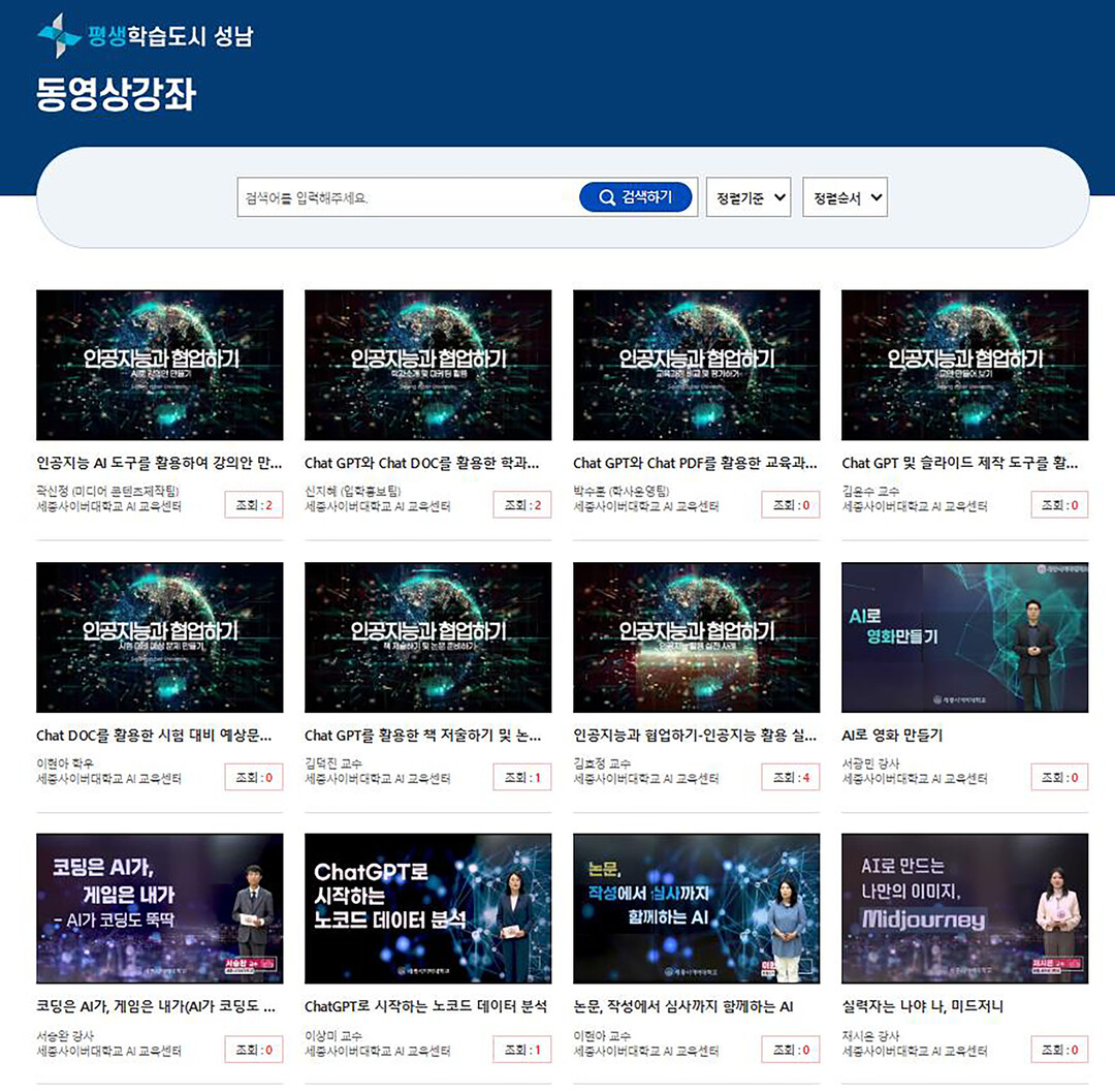 | ▲ 성남시 교육 플랫폼 '배움숲'에서 제공하는 AI 교육 콘텐츠 목록.[성남시 제공] |
