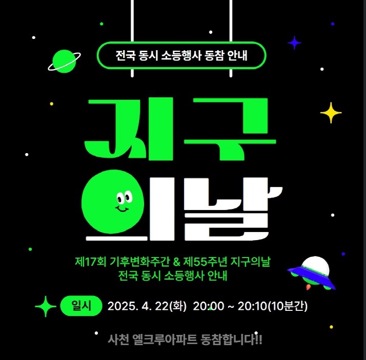 경남 사천시는 55회 지구의 날(4월22일)을 맞아 탄소중립 생활 실천 확산을 위해 21일부터 25일까지 '2025년 기후변화주간'을 운영한다.