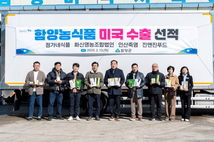 경남 함양군은 13일 수동면 옛 함양미곡종합처리장 일원에서 농식품을 미국 메가마트에 수출하는 선적식을 열었다. 행사에는 백삼종 부군수를 비롯해 관계자 15명이 참석했다.